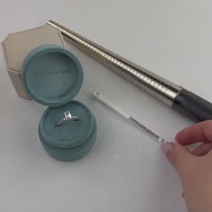 Simply thread the end of the belt through the slot to form a ring. Place the ring sizer on your finger and tighten until it fits comfortably.